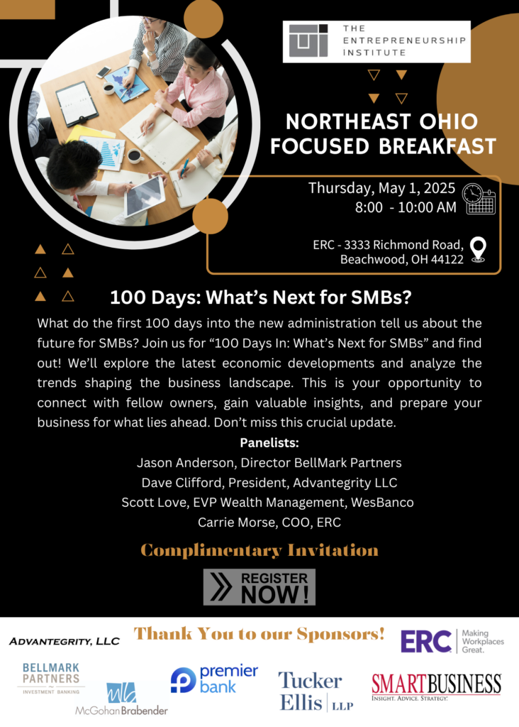 What do the first 100 days into the new administration tell us about the future for SMBs? Join us for “100 Days In: What’s Next for SMBs” and find out! We’ll explore the latest economic developments and analyze the trends shaping the business landscape. This is your opportunity to connect with fellow owners, gain valuable insights, and prepare your business for what lies ahead. Don’t miss this crucial update!